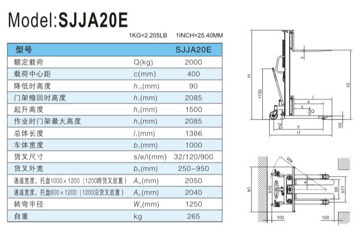 標(biāo)準(zhǔn)配置的門架以及寬度,適合國內(nèi)托盤堆垛使用。